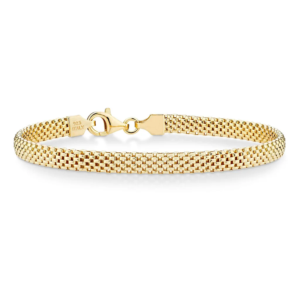 Women’s 925 Sterling Silver Italian Mesh Link Bracelet – Elegant Chain Fashion Jewelry