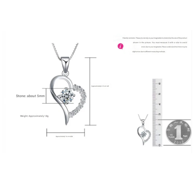 1 Carat Heart Pendant Necklace For Women S925 Silver 18K Gold Plated Chain D Color VVS1 Sparkling Diamond Necklaces Gift